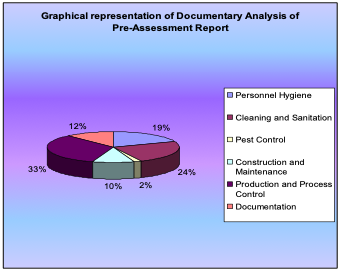 - It was found that the pre-assessment audit report provided detailed information on the non conformances of the plant with regards to HACCP implementation. The report highlighted that the highest number of findings related to the GMP aspect of Production and Process Control.